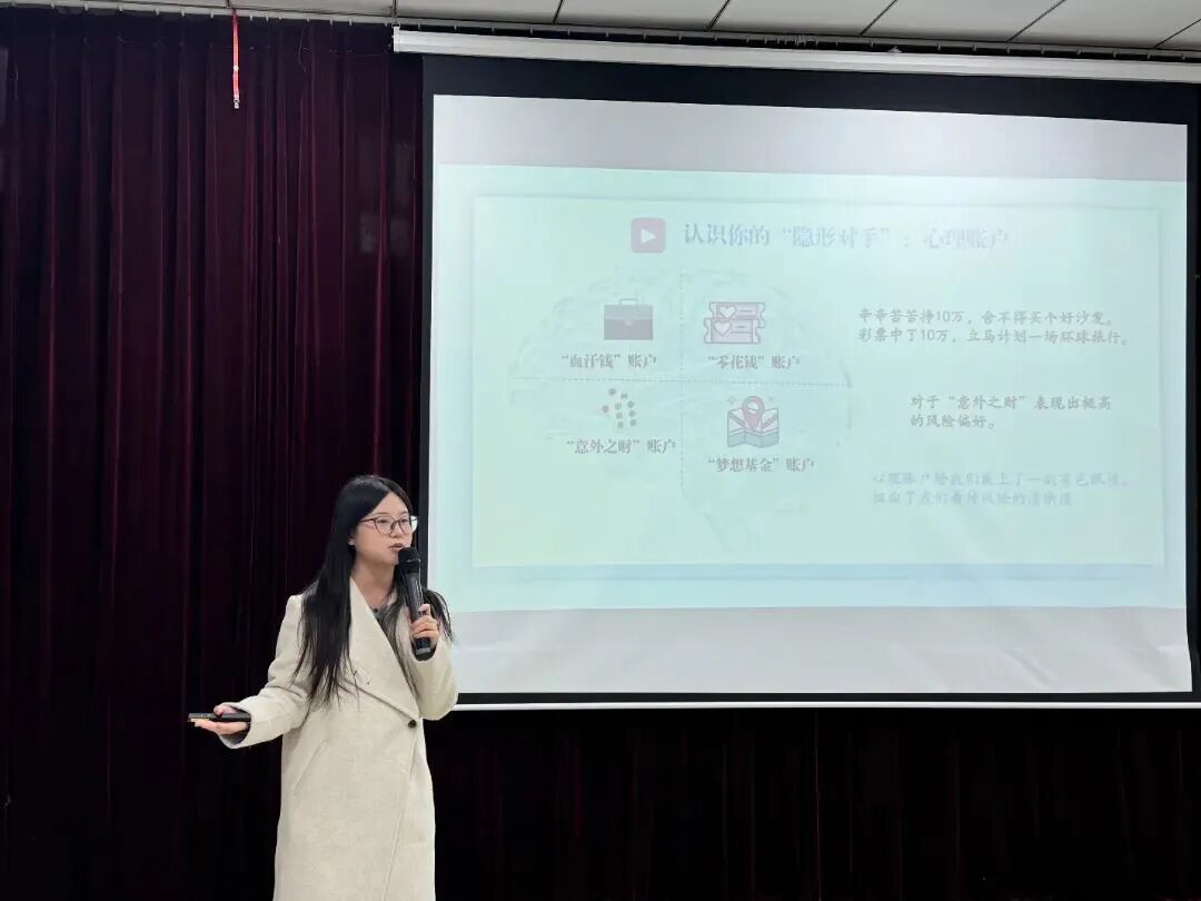 本次活动巧妙运用生动案例,引导同学们辨识日常生活中常见的金融陷阱。在互动问答环节,张可晴、刘雨欣和赵羽以日常投资为切入点,深度剖析生活中可能存在的新型诈骗套路,帮助参与者在沉浸式体验中提升风险识别能力,领悟金融思维在现实中的应用价值。通过互动交流,与会师生不仅增强了对金融知识的理解,也进一步巩固了所学内容,从而能够更准确地识别常见违法行为,有效防范诈骗风险。